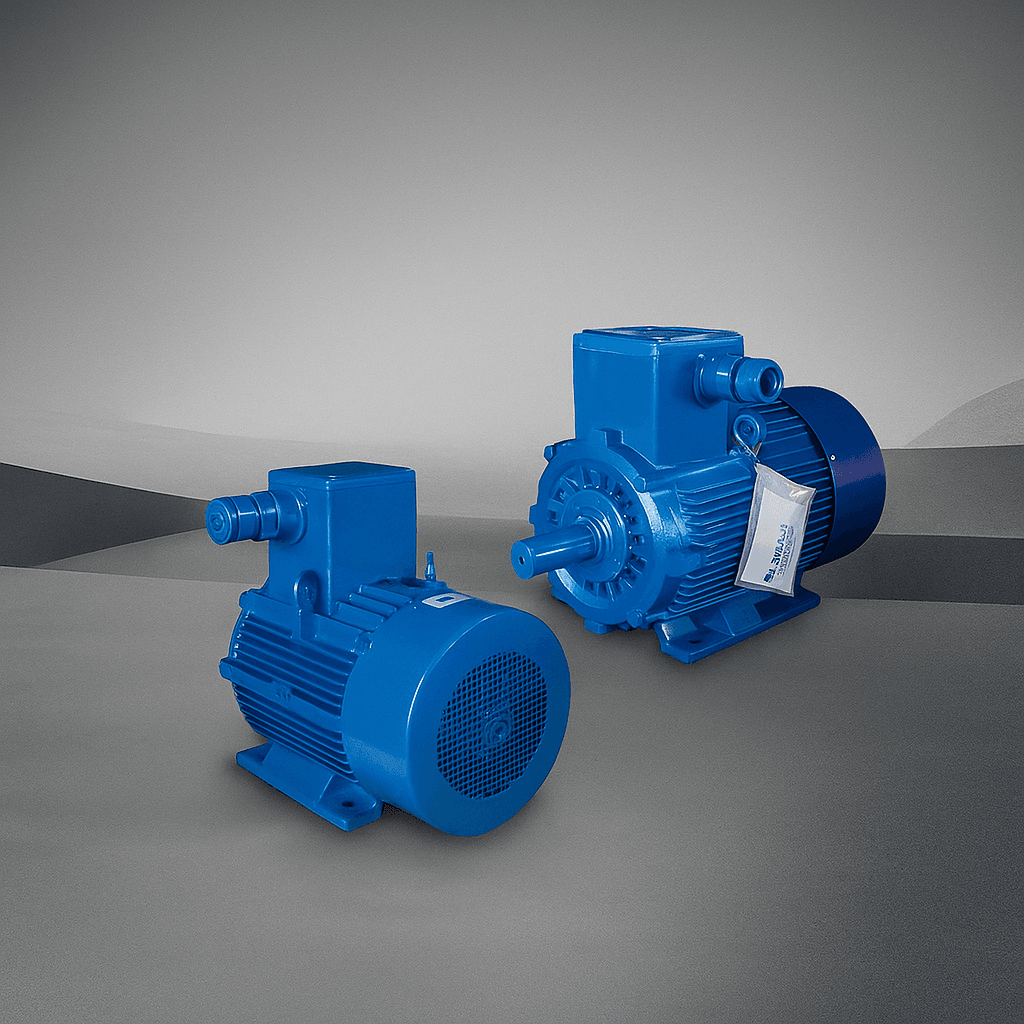موتورهای ضد انفجارسری YB : این موتورها دارای کارایی بالا، نویز کم، لرزش کم، گشتاور راهاندازی بالا و عملکرد قابل اعتماد هستند. ولتاژ نامی آنها ۲۲۰، ۳۸۰، ۶۶۰، ۲۲۰/۳۸۰ یا ۳۸۰/۶۶۰ ولت و فرکانس نامی ۵۰ یا ۶۰ هرتز است. درجه حفاظت این موتورها IP44 و فرم خنککننده آنها IC0141 است.